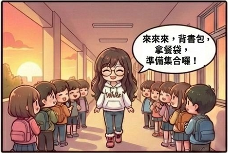 日常的帶隊行走,卻讓孩子氣喘吁吁。在孩子單純的眼裡,老師的背影或許就像巨人一樣高大?雖然童言童語有點誇張,卻讓人看見了師生間可愛的「身高差」萌點。