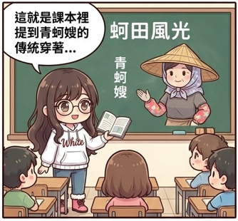 正在課堂上介紹「青蚵嫂」的傳統採蚵裝扮,沒想到學生卻覺得超級眼熟?原來老師的日常穿搭竟然與傳統文化有著驚人的相似度...